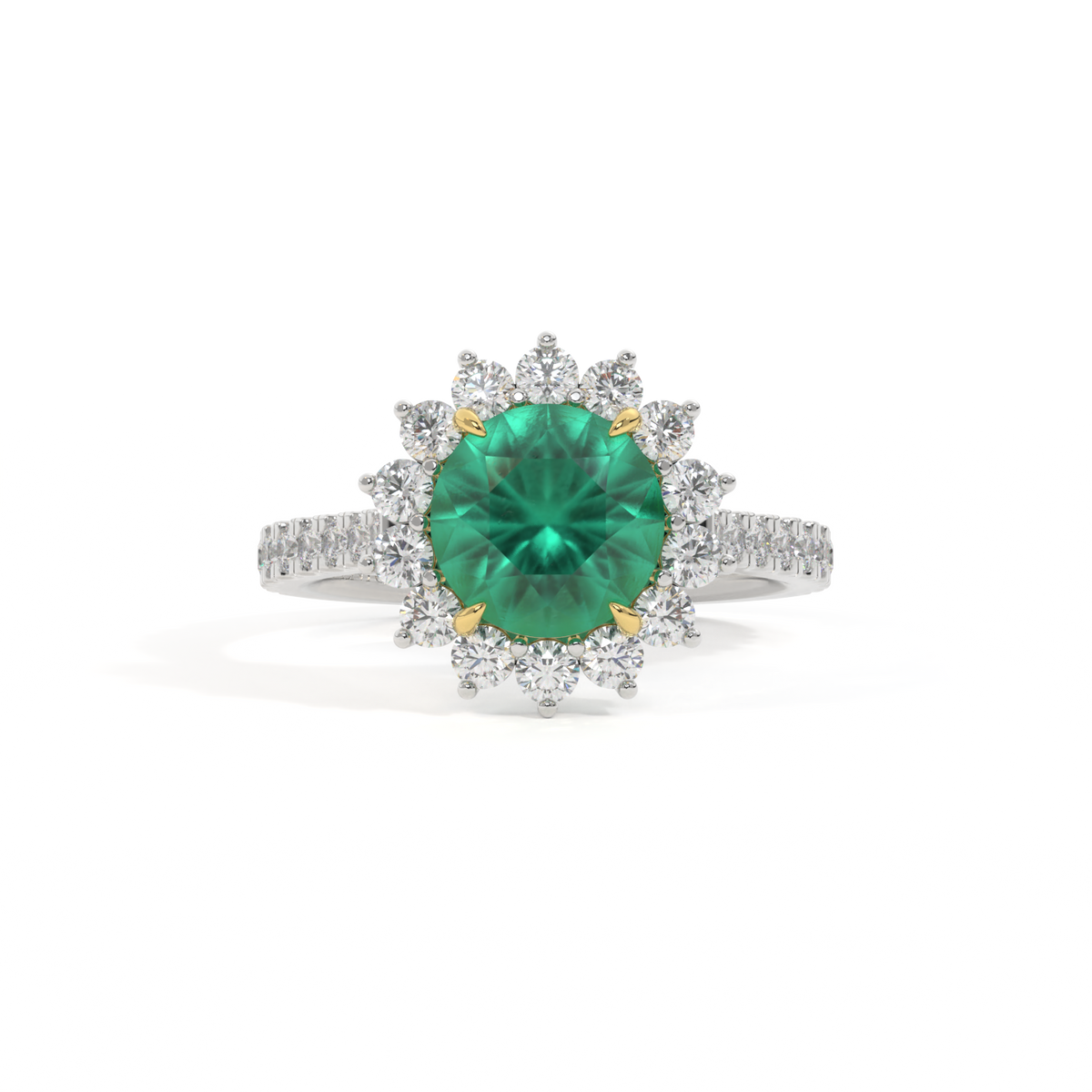 Star Round Emerald Platinum Ring