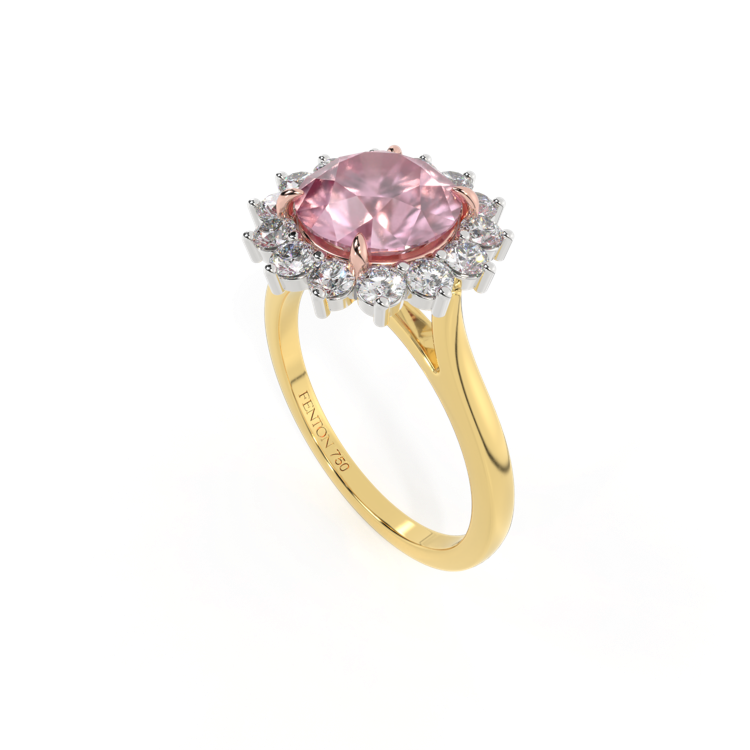 Star Round Pink Sapphire 18K Yellow Gold Ring