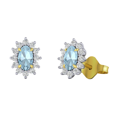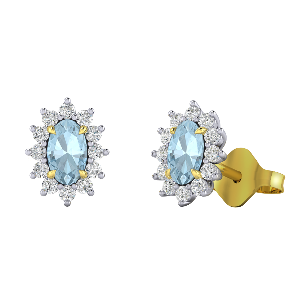 Star Stud Oval Aquamarine 18K Yellow Gold Earrings