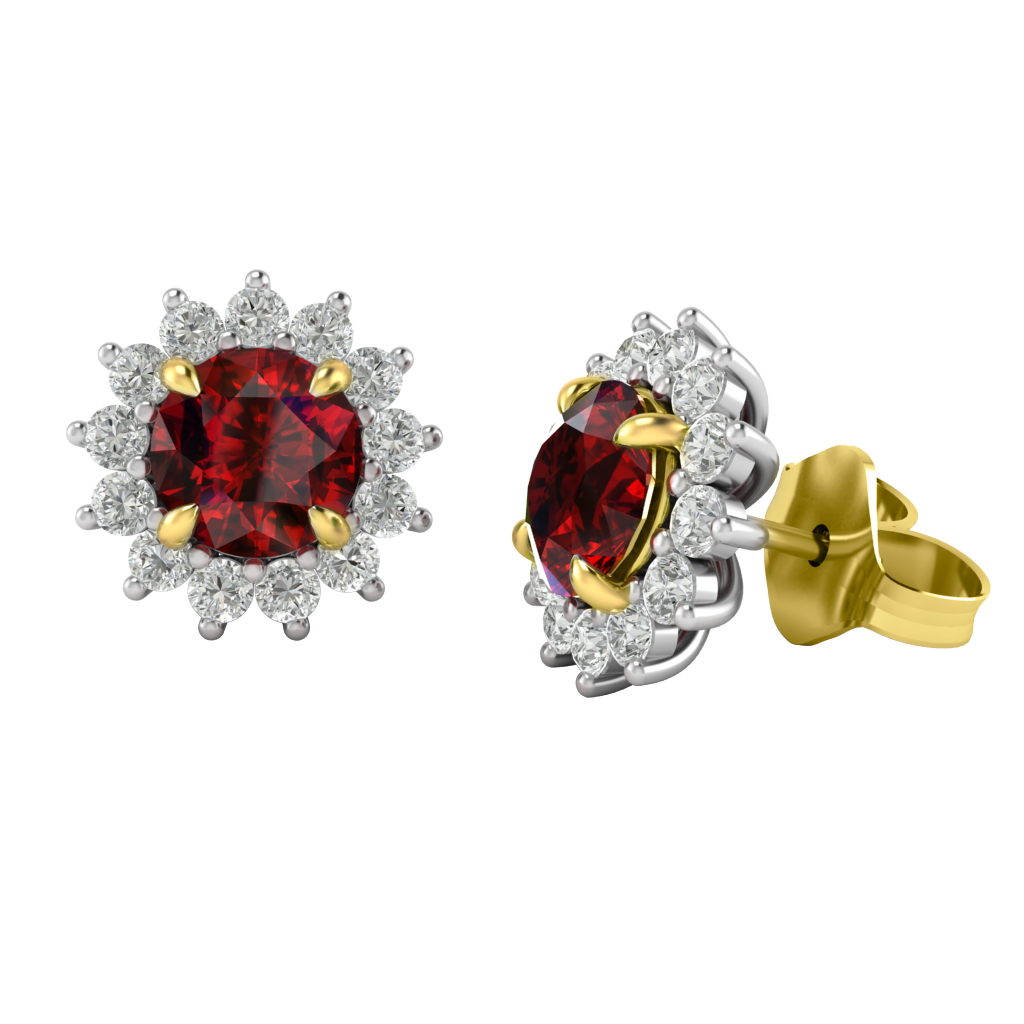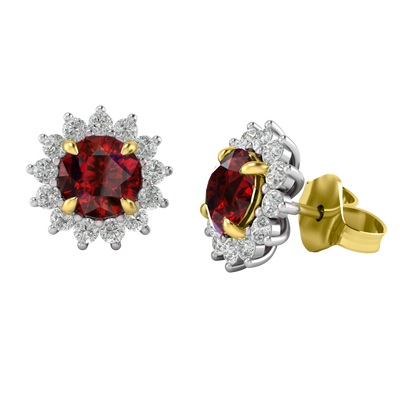 Star Stud Round Ruby 18K Yellow Gold Earrings