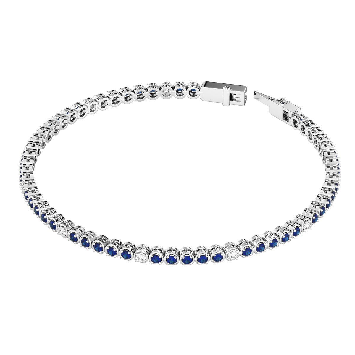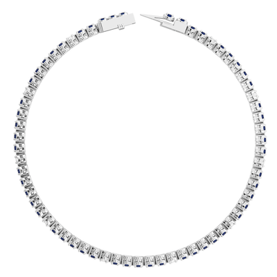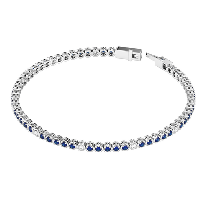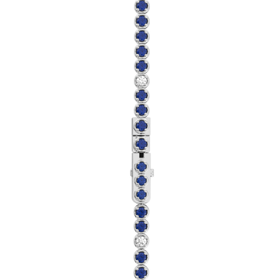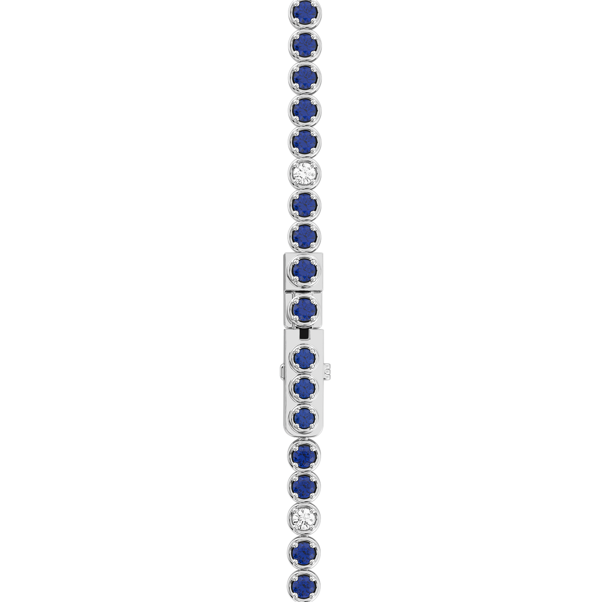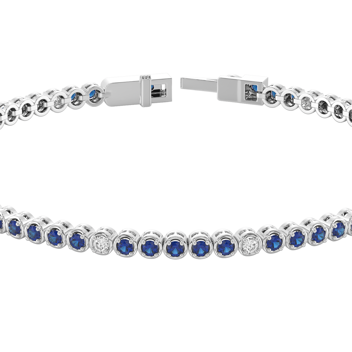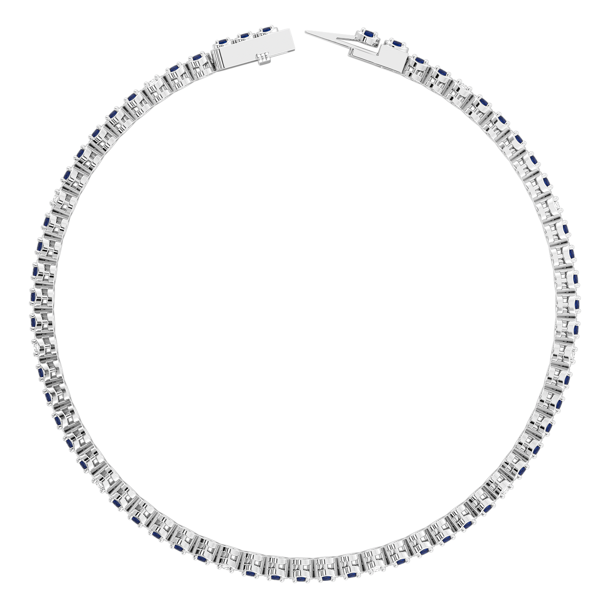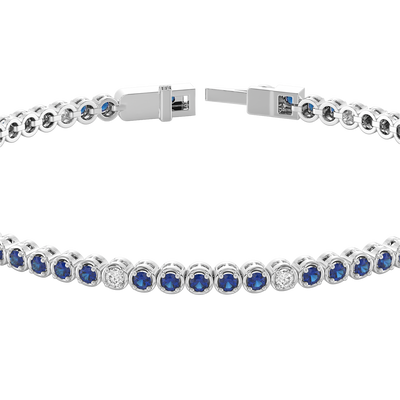 The Blue Sapphire and diamond stones are round-cut for maximum brilliance and magnificent sparkle. Each individual stone has been carefully set in a prong setting. The Tennis bracelet measures 7 inches in length with a traditional box clasp for extra safety and an elegant and slender fit around the wrist.