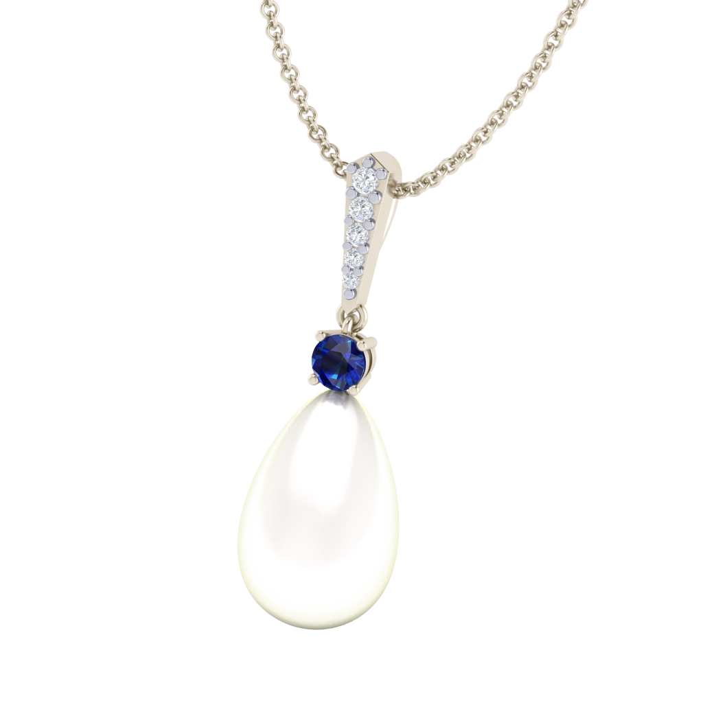 Pairing the majestic Pearl with glittering Blue Sapphire, this is a timeless addition to any jewellery collection. Your chain and setting will be crafted from 18K White Gold.