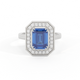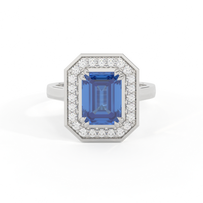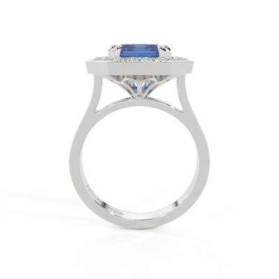 Your sparkling gemstone is framed by a halo of GH/VS 0.5mm diamond accents and set in bezel style. Your stone sits proudly on wedfit shoulders to allow your wedding band to sit flush. Crafted using solid 950 Platinum with an intricate petal-shaped gallery to draw light through your centre stone. The Deco ring is the perfect choice for an engagement ring to treasure forever or a show-stopping gift for someone on an anniversary, birthday or special gift.