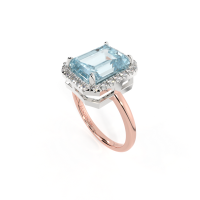 Halo Emerald Aquamarine 18k Yellow Gold Bigger