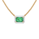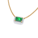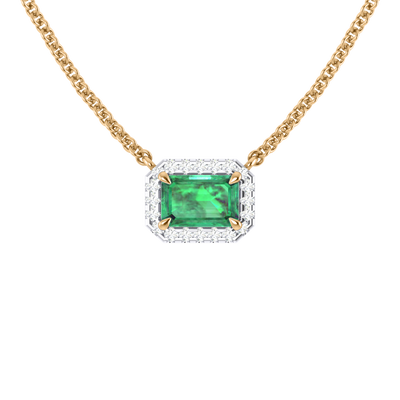 The Halo Necklace is the perfect gift for just about any occasion. A solid 18K Yellow Gold chain securely holds a sparkling Emerald cut Emerald at the centre of your necklace surrounded by a halo of round brilliant-cut pavé G/H colour and VS clarity diamonds. The Halo Necklace is the perfect combination of finest craftsmanship and understated elegance.
