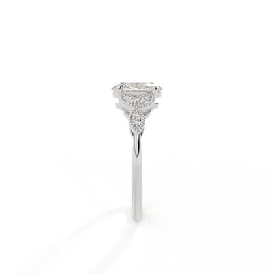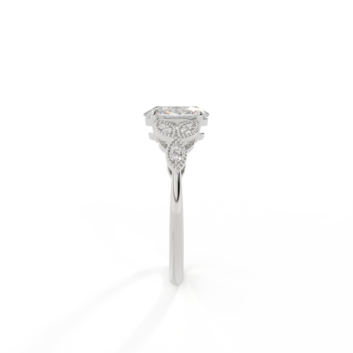 The beauty of a flower, re-imagined for eternity. Inspired by the romance of the Victorian era, the Floral ring features a total of twelve round brilliant cut diamonds, set in delicate marquise-shaped settings with milgrain detailing - an elegant twist on a timeless classic, and the perfect, soft frame for a Lab Grown Diamond centre stone of any shape, cut and size. Celebrate memories old and new with "The Floral".