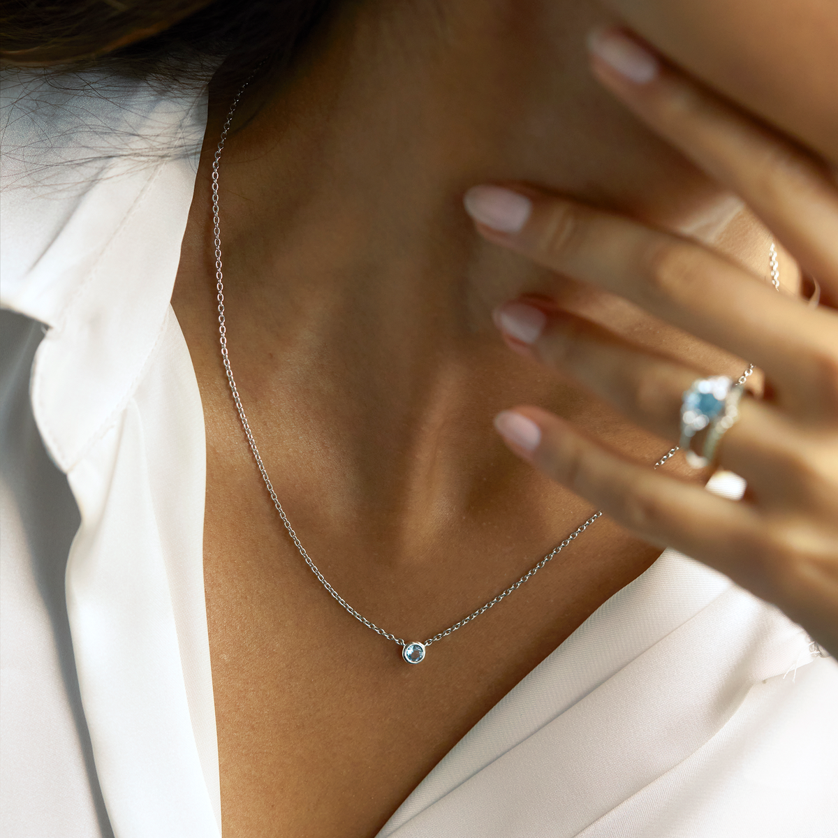 Bring that special sparkle front and centre with The Little Bezel Necklace, a classic design that belongs into every jewellery collection. Crafted from 18K White Gold, this necklace features a 3.5mm round-cut Blue Sapphire in a subtle but modern bezel setting, giving the impression of an elegantly floating centre stone. Set on an extendable 15” to 17” inch 18K White Gold chain, it is the perfect design to wear solo or layer with your favourite necklace designs. The elegant aesthetic of this timeless necklace makes it the perfect jewellery gift for a special moment in time - if for yourself or that special someone. Complete the look with our matching Bezel Drop Earrings, The Bezel Seven Stone Necklace and The Bezel Ring.