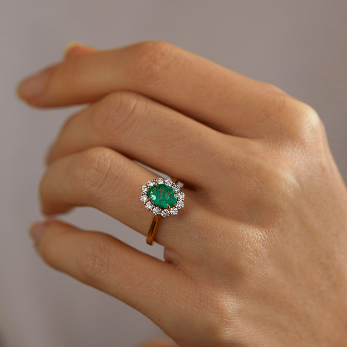 Inspired by the antique Georgian designs of the 18th century, the Mayfair is Fenton’s modern take on the classic cluster. The Mayfair design pays homage to where Fenton all began! Your sparkling Emerald is framed by a halo of twelve brilliant round-cut GH/VS diamonds and sits proudly on wedfit cathedral-tapered shoulders to allow it to sit flush with your wedding band. Crafted using Platinum with an intricate petal-shaped gallery, this design draws in light to interact and shine through your centre stone. The Mayfair cluster ring is the perfect choice for a timeless engagement ring style or the sparkling forever gift for someone you love on a special anniversary, birthday or stunning addition to your jewellery collection