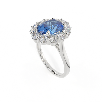 Inspired by the antique Georgian designs of the 18th century, the Mayfair is Fenton’s modern take on the classic cluster. The Mayfair design pays homage to where Fenton all began! Your sparkling Aquamarine is framed by a halo of twelve brilliant round-cut GH/VS diamonds and sits proudly on wedfit cathedral-tapered shoulders to allow it to sit flush with your wedding band. Crafted using Platinum with an intricate petal-shaped gallery, this design draws in light to interact and shine through your centre stone. The Mayfair cluster ring is the perfect choice for a timeless engagement ring style or the sparkling forever gift for someone you love on a special anniversary, birthday or stunning addition to your jewellery collection