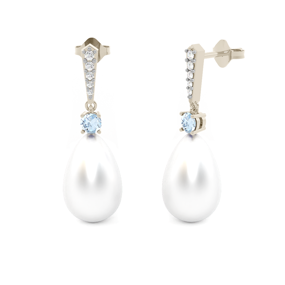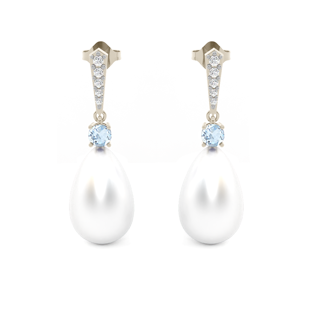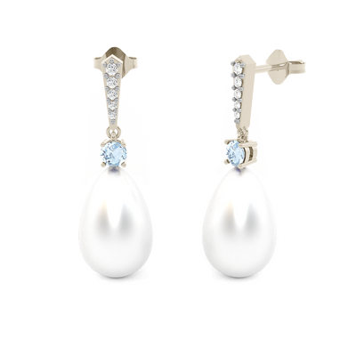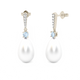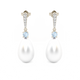 Pearl Drop Round Aquamarine 18K White Gold Earrings