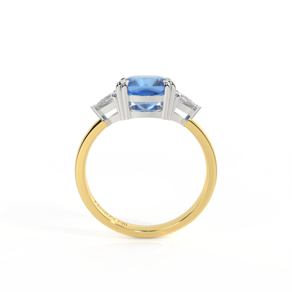 This one of a kind Blue Sapphire measures 8x8mm and has been sourced through our ethical supply chain. The setting is handcrafted in recycled 18K Yellow Gold, for a beautiful modern heirloom.