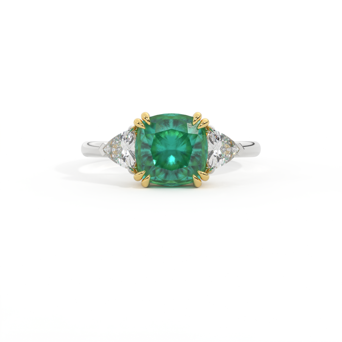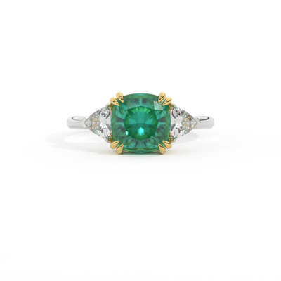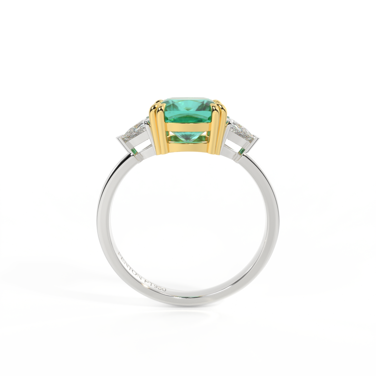 All of our rings are available in blue sapphire, ruby, emerald, pink sapphire, yellow sapphire, garnet and aquamarine. We offer three metals, 18K rose gold, 18K yellow gold and platinum. The centre stones are available in four cuts, round, cushion, oval and emerald cut and five sizes for each cut and style.