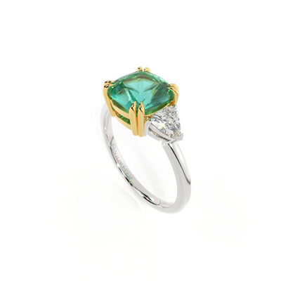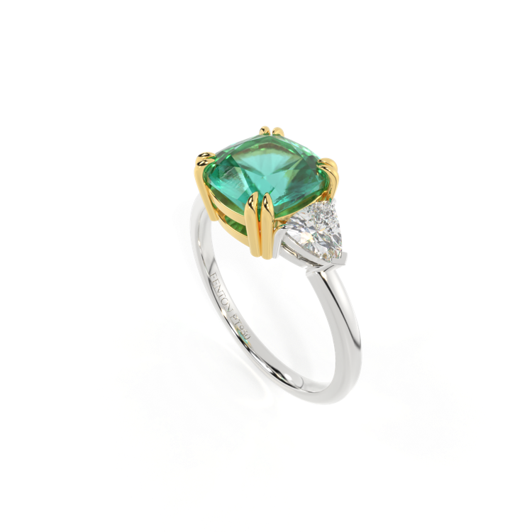 Proof that three isn't always a crowd, our trilogy ring unites a coloured centre stone with two surrounding GH VS diamonds. Choose your own cut and centre stone to create your own version of this elegant design.