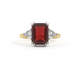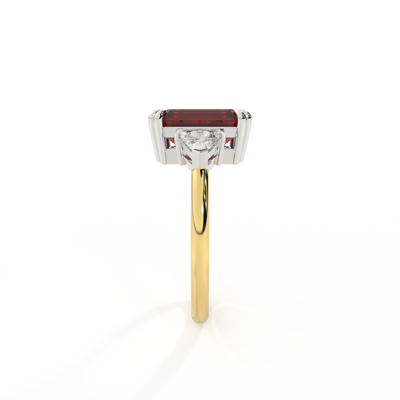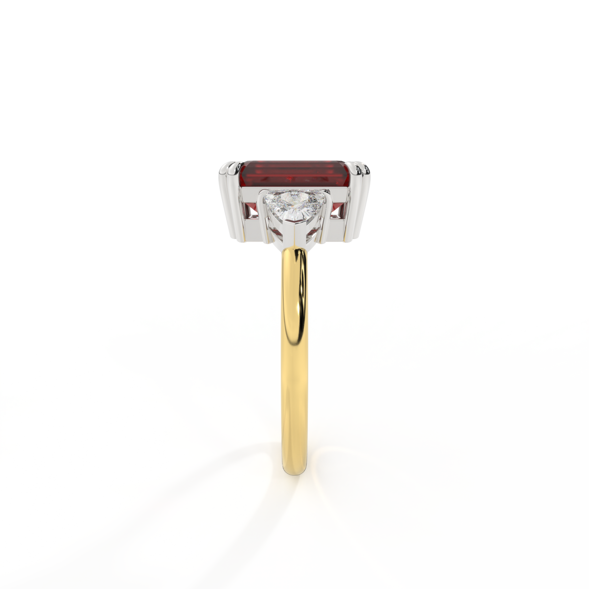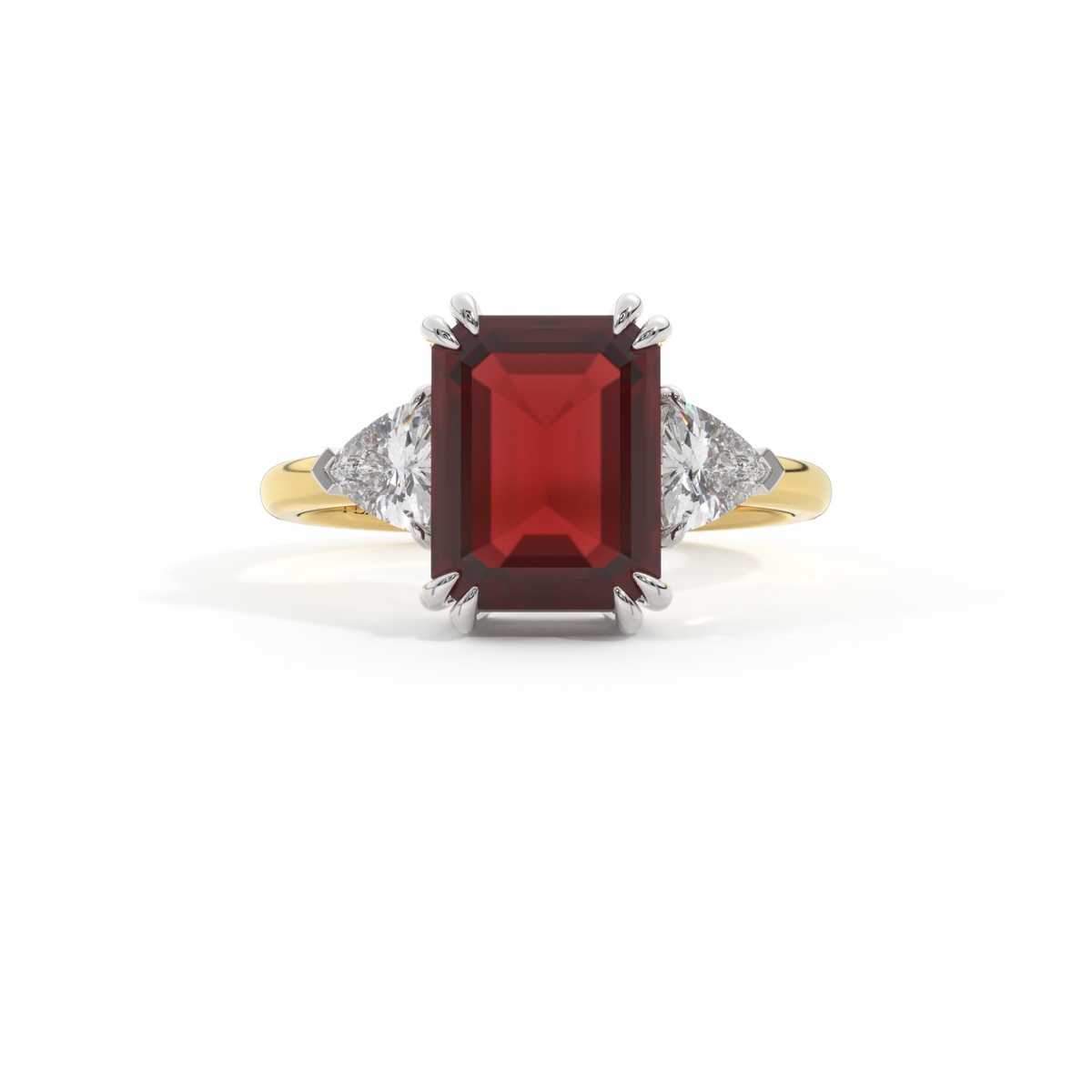 All of our rings are available in blue sapphire, ruby, emerald, pink sapphire, yellow sapphire, garnet and aquamarine. We offer three metals, 18K rose gold, 18K yellow gold and platinum. The centre stones are available in four cuts, round, cushion, oval and emerald cut and five sizes for each cut and style.
