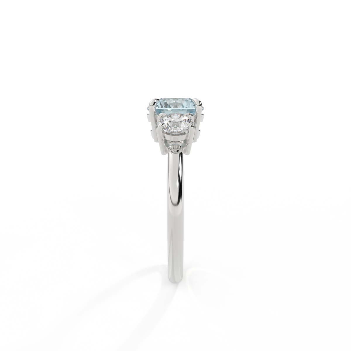 Proof that three isn't always a crowd, our trilogy ring unites a coloured centre stone with two surrounding GH VS diamonds. Choose your own cut and centre stone to create your own version of this elegant design.