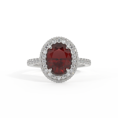 An exceptional oval cut Garnet in 'The Vintage' style is a true classic, evolved from regal designs. Delicate metal work under the ring is inspired by antique engagement rings, paired with the best of modern manufacturing to add comfort and durability.
