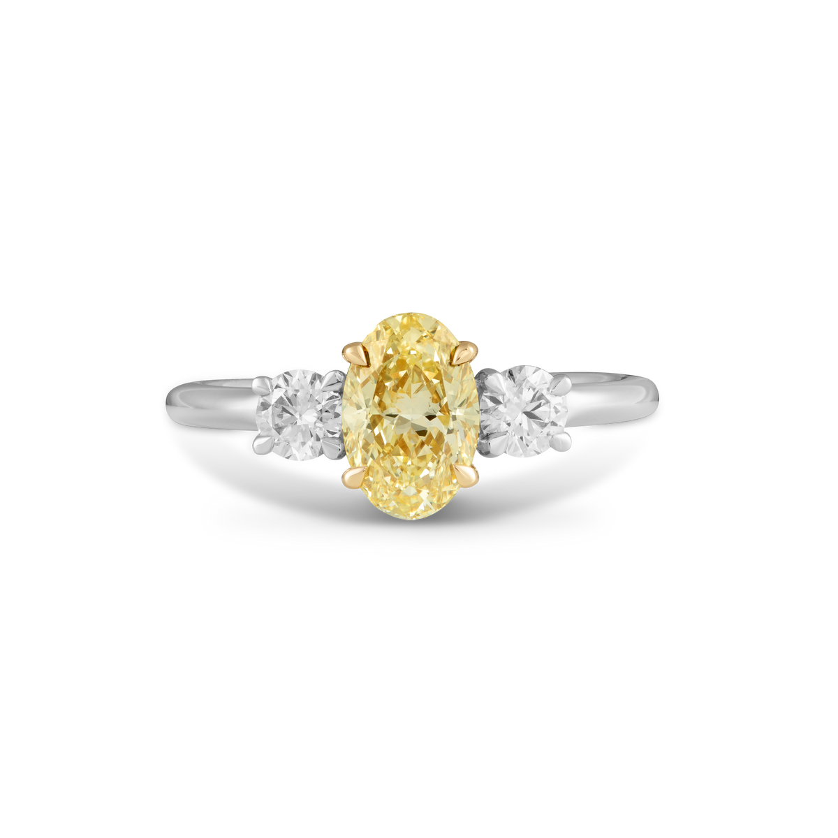 Yellow Solar Diamond Trilogy Oval Cut Diamond Platinum 1ct