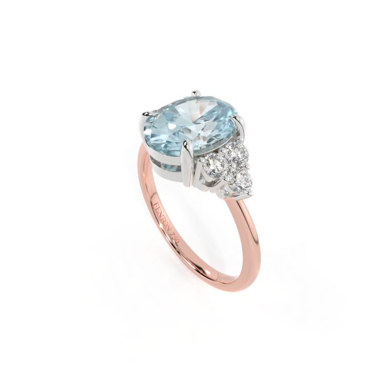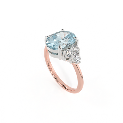 Trefoil Oval Aquamarine 18K Rose Gold Ring