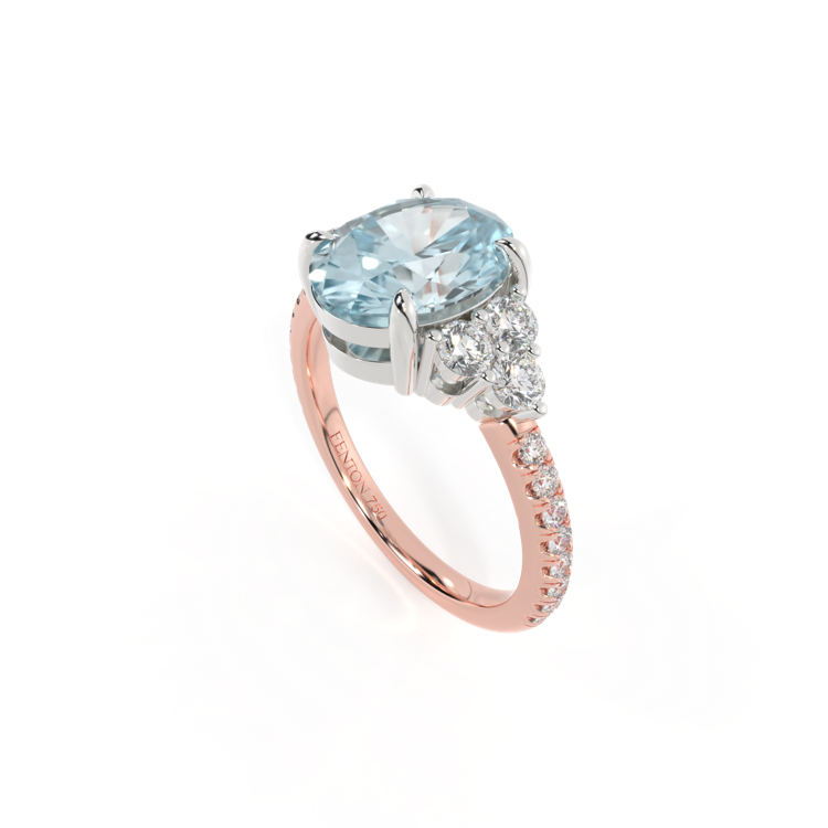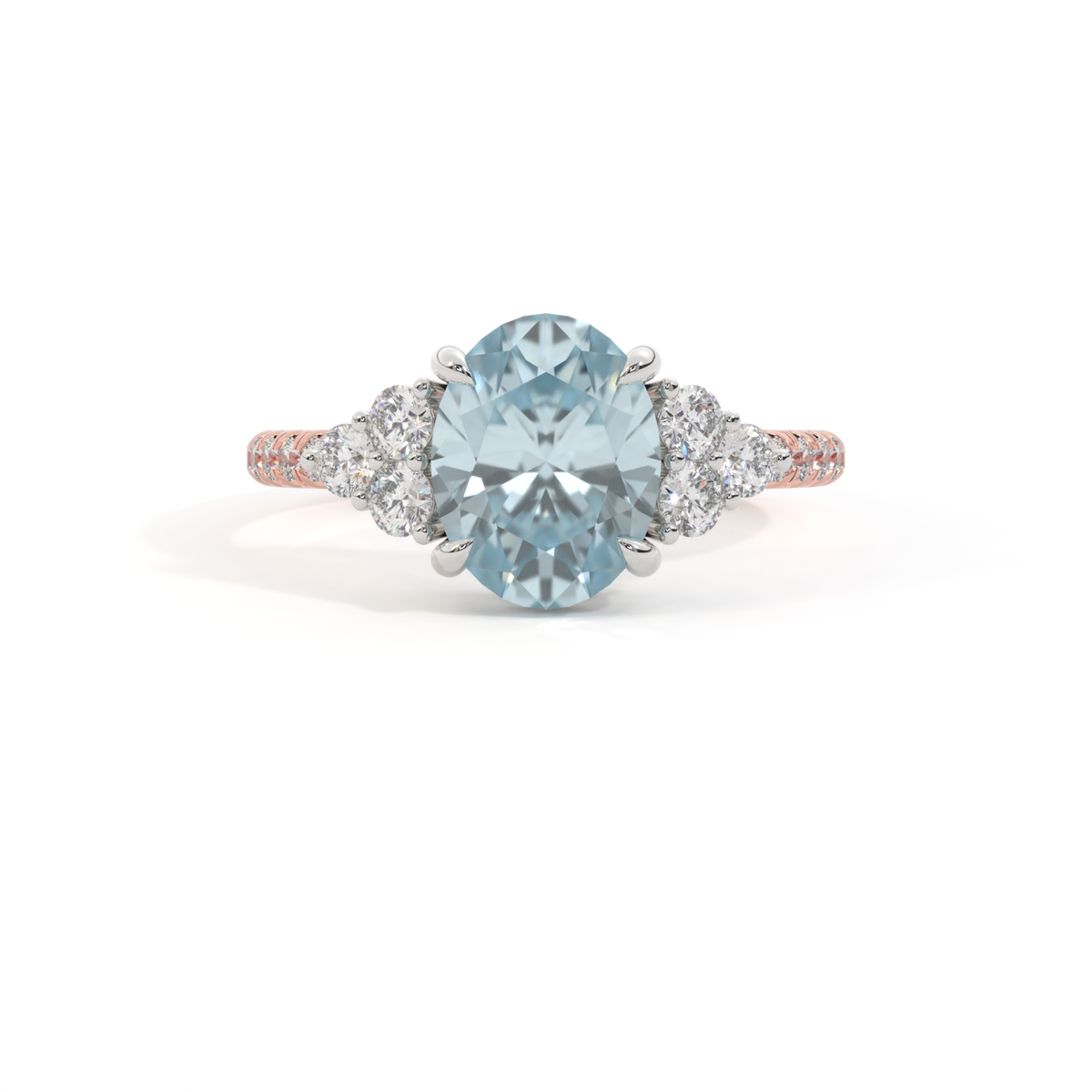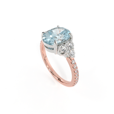 Trefoil Oval Aquamarine 18K Rose Gold Ring
