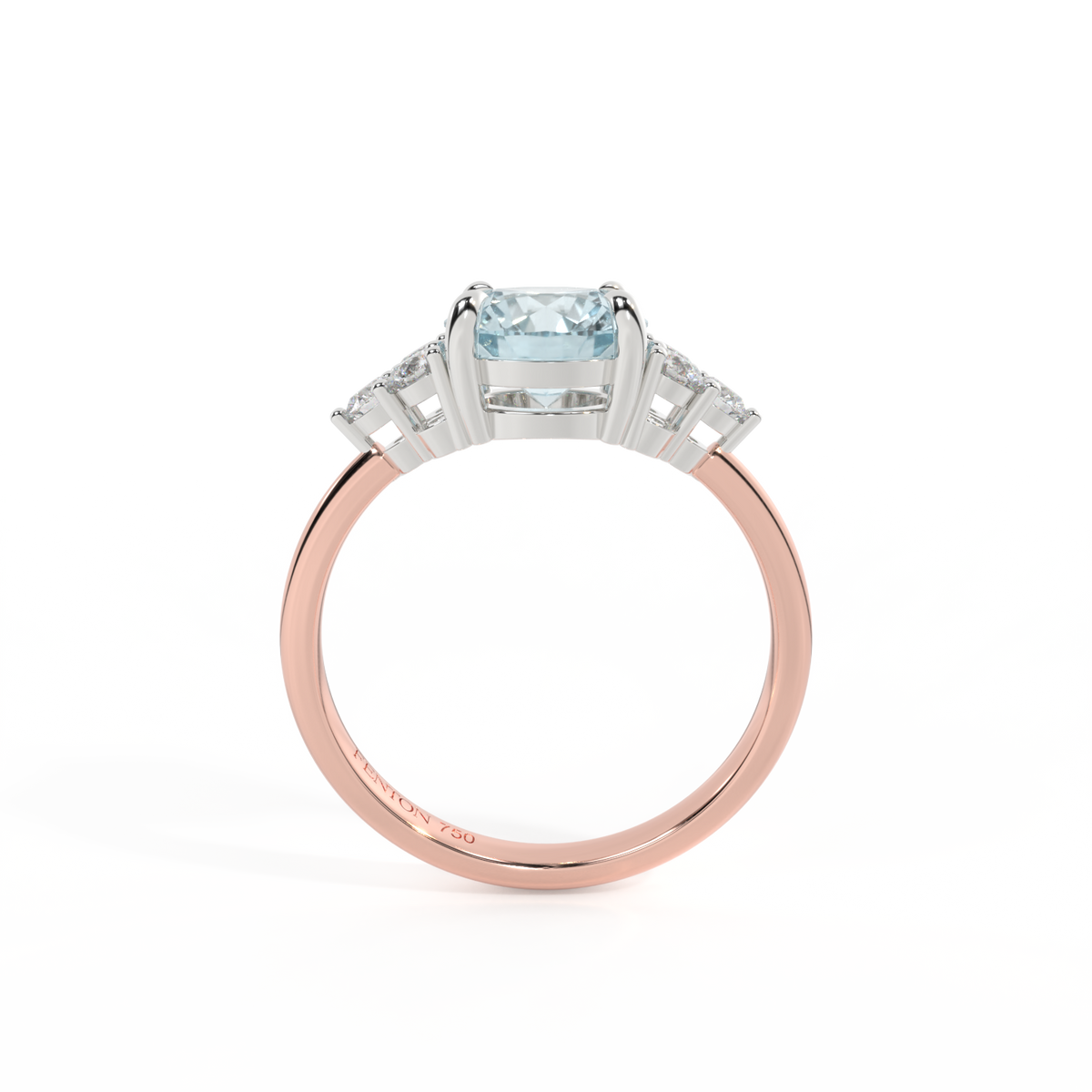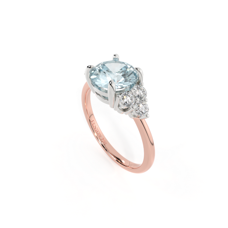 Trefoil Round Aquamarine 18K Rose Gold Ring