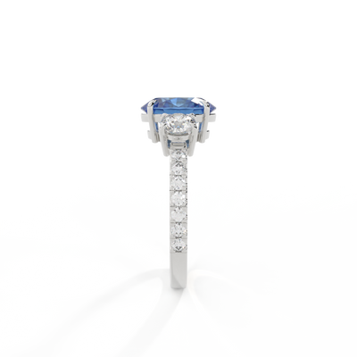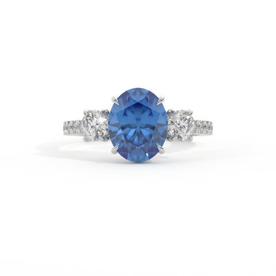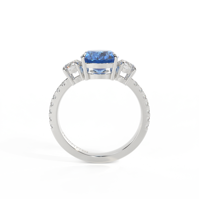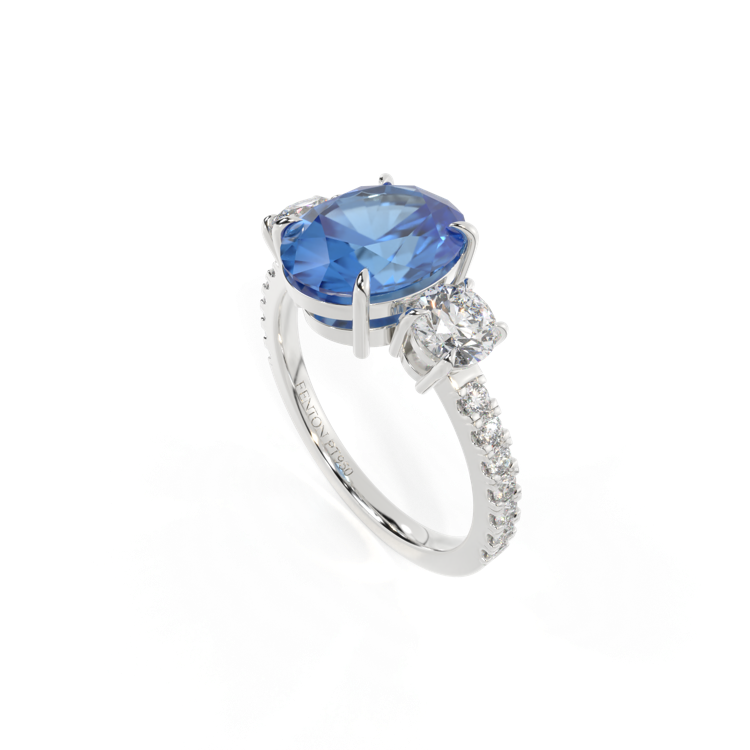Proof that three isn't always a crowd, our trilogy ring unites a coloured centre stone with two surrounding GH VS diamonds. Choose your own cut and centre stone to create your own version of this elegant design.