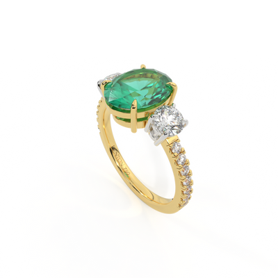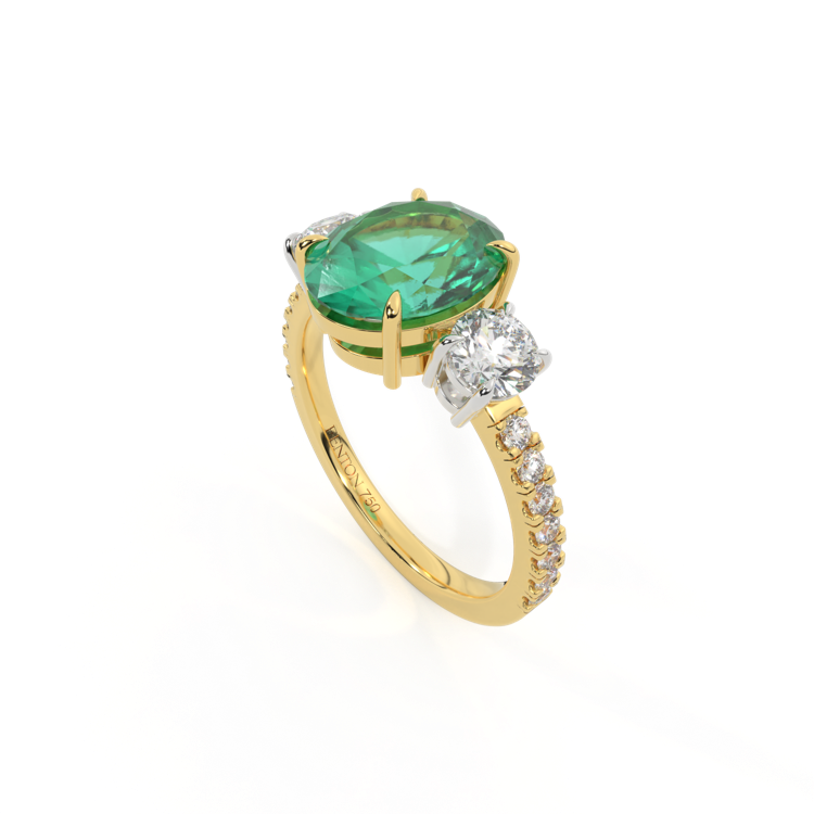 Trilogy Oval Emerald 18K Yellow Gold Ring