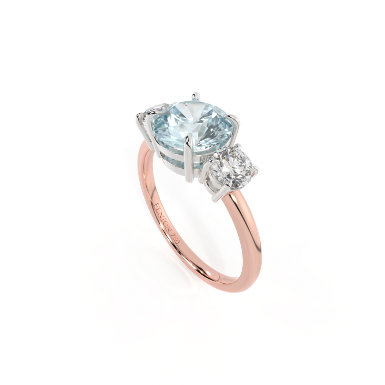 Trilogy Round Aquamarine 18K Rose Gold Ring