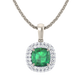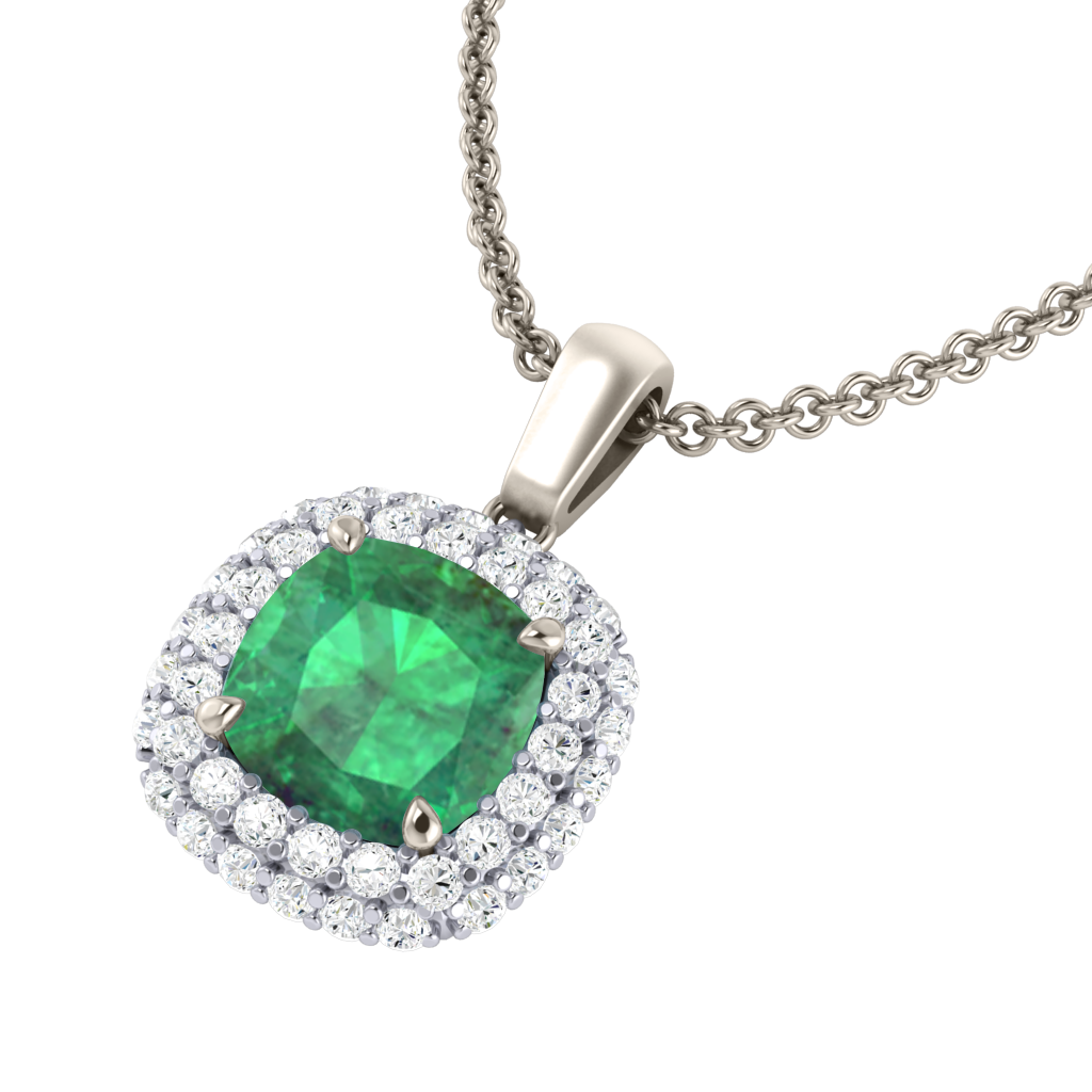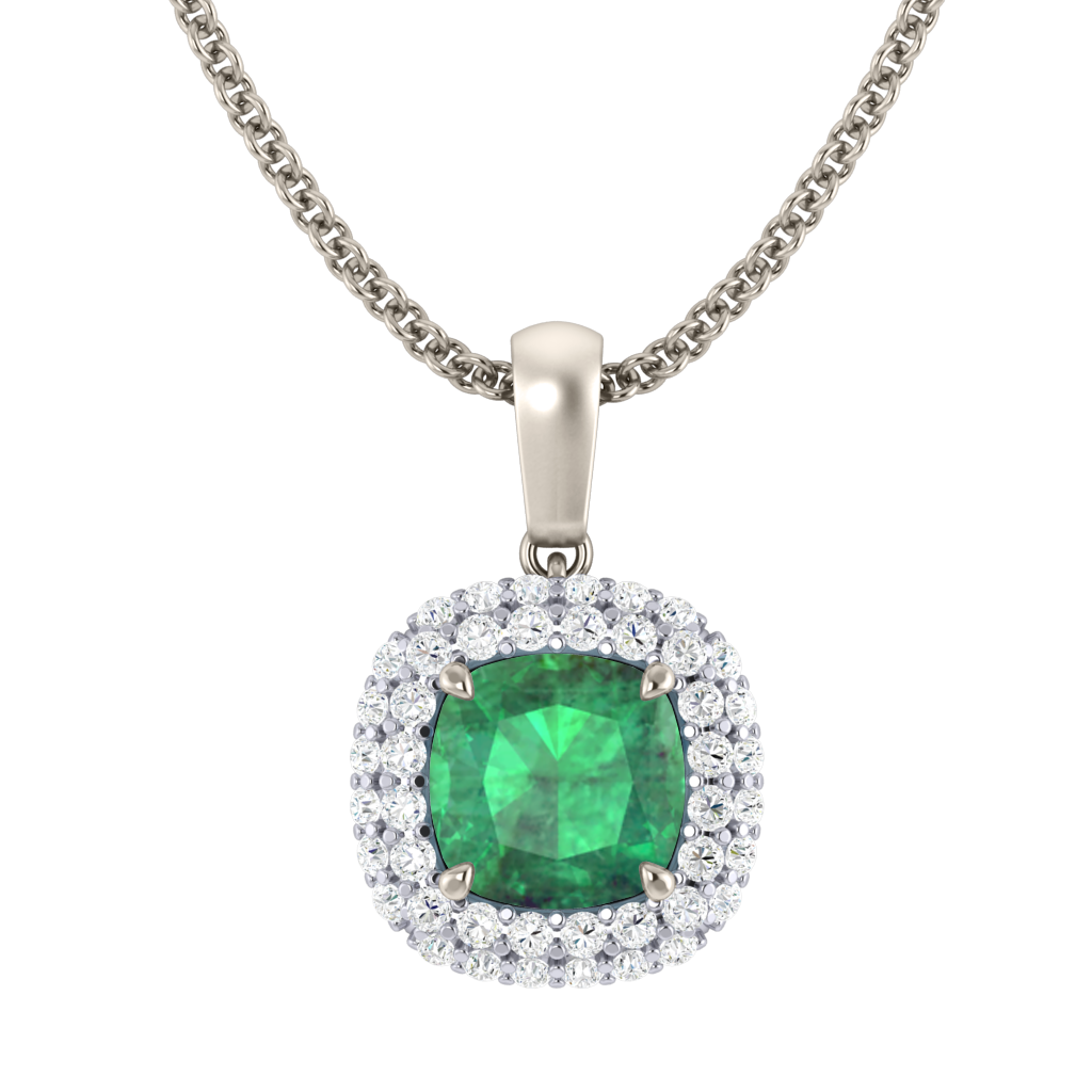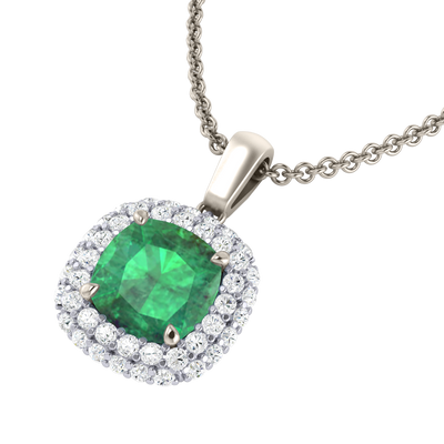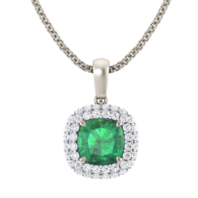 Wear your Emerald close to your heart with our Vintage Pendant Necklace. The sparkling Cushion cut Emerald pedant is framed with a double halo of G/H colour and VS clarity diamonds giving the necklace its much-loved vintage aesthetic inspired by 18th century jewellery pieces.