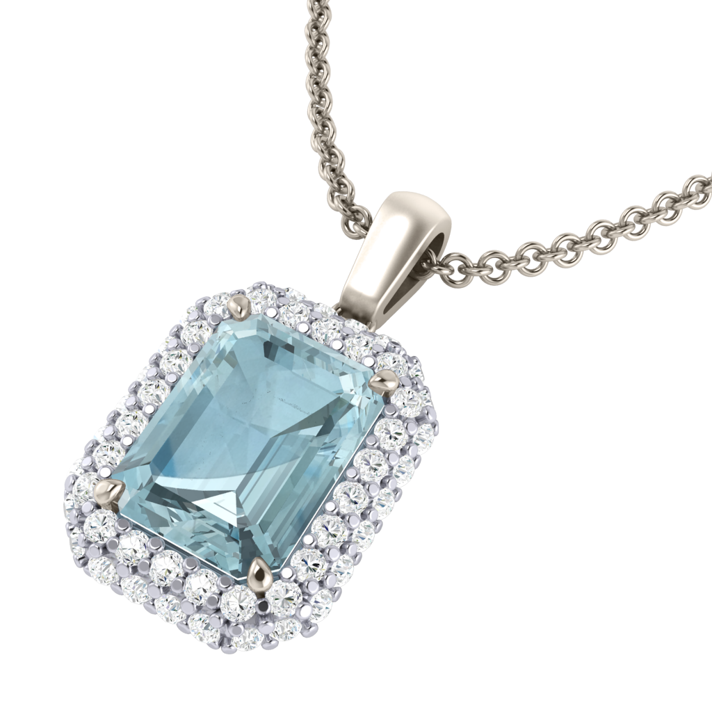 Wear your Aquamarine close to your heart with our Vintage Pendant Necklace. The sparkling Emerald cut Aquamarine pedant is framed with a double halo of G/H colour and VS clarity diamonds giving the necklace its much-loved vintage aesthetic inspired by 18th century jewellery pieces.