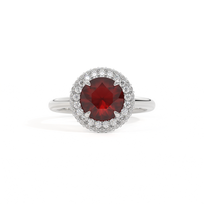 Vintage Round Garnet Platinum Ring